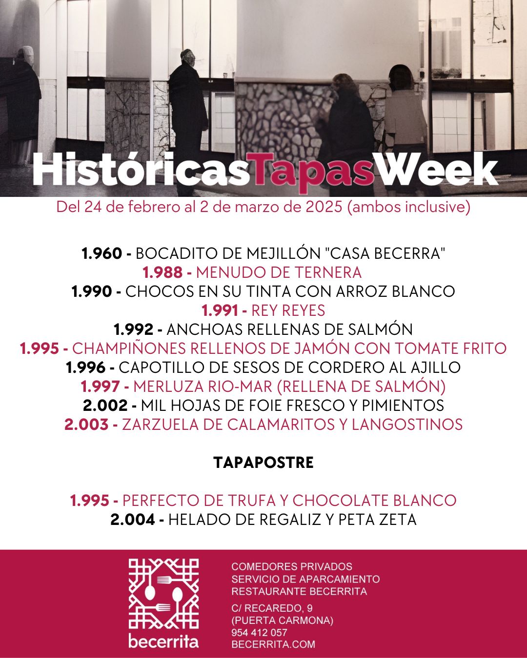 Del 24 de Febrero al 2 de marzo de 2025 abrimos el baúl de los recuerdos gastronómicos para rendir un homenaje a nuestras raíces con las tapas históricas que conquistaron los paladares de varias generaciones y que han escrito nuestra historia.